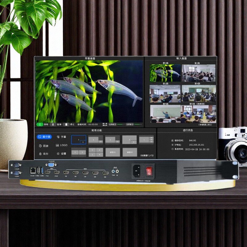 產品詳細介紹產品特點: ★1.系統結構:一體嵌入式結構;1U機架式全鋁機箱;1個內部3.5寸 SATA盤位; ★2. 視頻采集:硬件采集方式;視頻輸入接口: HDMI*5 (任意選2路4KP30其余1080P60); 3. 輸入分辨率:640x480 ~ 3840*2160,支持自動偵測分辨率及幀率功能,不但支持常見的4k,1080P60/50,1024x768@60fps等常見的分辨率,也支持1080P25/P30等分辨率 4. 支持4K H265或H264編碼及解碼; 5. 支持1個USB3.0接U盤及移動硬盤,1個USB2.0接鼠標,不用接網絡即可直接操控本地回放及文件導出等操作; 6. 支持外接13寸或23寸觸摸屏顯示圖像及觸控,實現所見及所得的導播效果;支持VGA及2個HDMI輸出,HDMI支持4KP輸出(固件暫未開放4K60,暫僅支持4K30P輸出); 7. 網絡流媒體延時:<=1秒; 8. 錄制格式:MP4; 9. 錄播功能:同步錄制/同步直播/在線點播/遠程導播/本地導播/互動錄播; 10. 錄播模式:多流多畫面(資源模式)/單流單畫面(電影模式)/單流多畫面(畫中畫); 11. 支持一路rtsp/ts流解碼,分辨率支持4k,解碼流可進行導播后錄制,直播及點播,支持解碼流全屏顯示及聲音單獨輸 12. 支持rtmp/rtsp直播協議,內嵌rtmp server功能,單機支持30-50并發數,不需要安裝fms/red5等服務端軟件直接實現網頁直播; 13. 支持瀏覽器直接觀看直播并不用裝插件,支持html5點播; 14. 提供遠程導播軟件,可實時監控4畫面并實時導播一路導播流,并實時錄制,且同時支持網頁按紐導播; 15. 支持疊加4行字幕,每行字幕可設置開關,字體大小,色彩,坐標,并能支持中英文; 16. 支持透明背景logo圖片疊加,支持自動疊片頭片尾; 17. 每路錄制文件及直播流均支持1080p60幀H265或H264編碼,幀率提高一倍從而可使效果得到極大的提升,徹底消滅切幀現象;HDMI支持4k分辨率及4k分辨率直播,錄制及點播; 18. 支持開機就錄,硬盤錄滿會自動循環覆蓋時間最老文件,支持自動分段且分段時間可設置,徹底實現無人值守的全自動錄播;支持ftp自動上傳至指定帳號及密碼的ftp服務器; ★19. 程序固化在內置芯片中,穩定高效,使用嵌入式Linux系統,不會中毒,可隨時斷電及長時間開機。用戶可自行安裝硬盤,徹底擺脫售后煩惱;支持MP4錄制實時保護,斷電文件可自動恢復; 20. 支持多級用戶管理,分管理員用戶和一般用戶; ★21. 提供android的 APP,APP用戶及密碼由管理員設置支持200+用戶,APP支持實時觀看直播及vod點播,端對端延時小于3秒,觀看頁面可直接切換任意通道觀看;