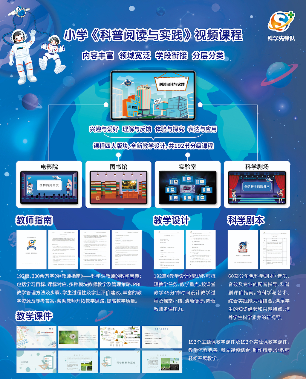 產品詳細介紹1、課程名稱:《科普閱讀與實踐》課程包(視頻課程,部分區域為電子出版物) 2、課程數量:共192節,分一上~六下共6個級別12段課程,每段16節,每節課45分鐘 3、產品形態:共12個品種,每個品種一個U盤,每個U盤預裝一個年級一個學期的16次課程 4、課程定價:區域定價/U盤/學期 5、課程結構分四大模塊,分別為圖書 館、電影院、科學實驗室、科學劇場, 創新的教學設計,解決認知、理解、 探究、應用和創新過程,符合最新版 科學課程標準要求,符合STEAM學科 融合和過程探究的特點。 6、教學流程分十大教學步驟,分別為課程導引、主題講解、思考閱讀、問題解答、探究實驗、拓展故事、名師講堂、自由閱讀、課程總結、 下節預告,探究實踐中加入了大量的思維訓練活動和實踐活動,強化思維訓練和實踐能力。 |