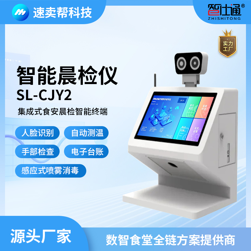 產品詳細介紹產品功能 操作流暢:采用嵌入式Linux操作系統,啟動時間短; 高清屏幕:15.6寸高清液晶觸控顯示屏,分辨率高; 人臉識別:支持人臉識別,攝像頭角度可上下調節,識別更靈活; 秒級測溫:熱成像測溫技術,遠距離測溫精度可達0.2℃; 感應消毒:自帶消毒裝置,感應式噴霧殺菌; 手部檢測:AI識別手心手背戴戒指、創可貼、指甲油、濕疹等異常; 部署簡單:支持4G/5G通訊,靈活部署; 支持對接:可單機使用,也可集成對接,滿足各種場景需求; |