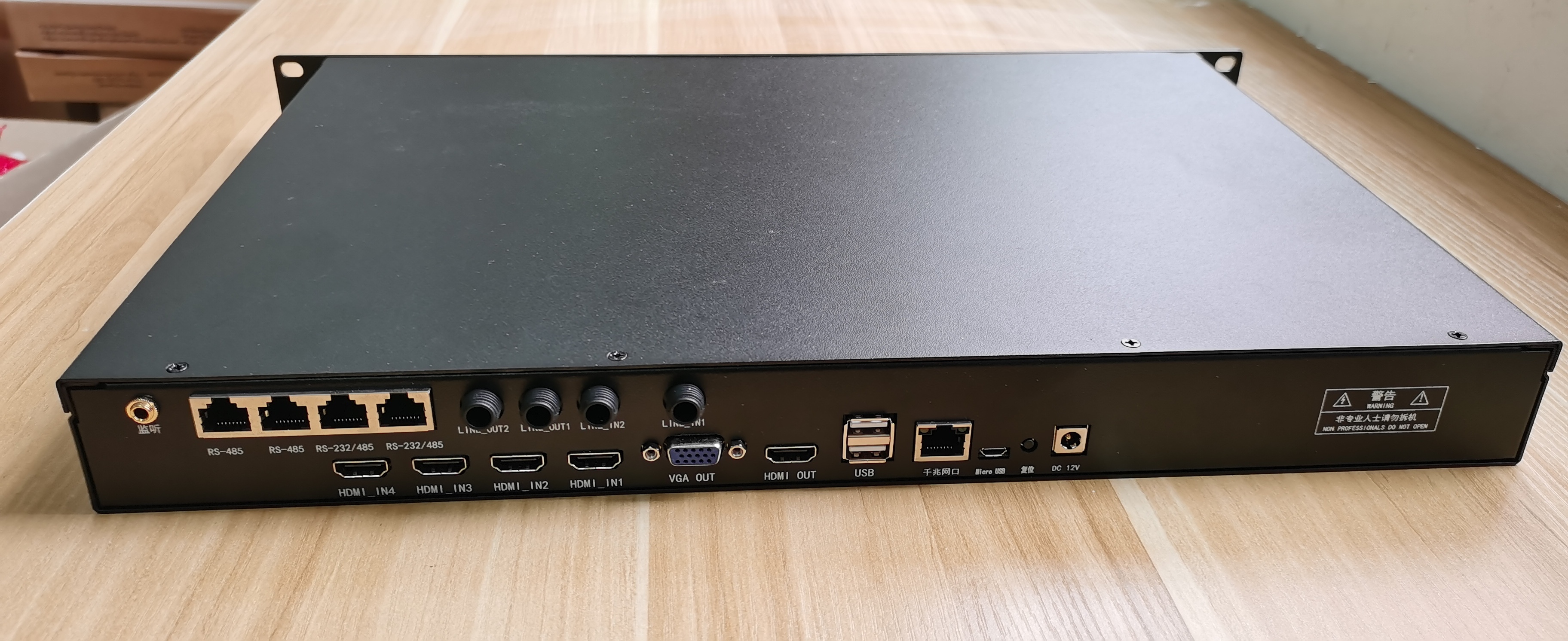  系統結構:一體嵌入式結構;  設備高度:1U  視頻采集:硬件采集方式  視頻輸入接口:2*HDMI+2路SDI(3GSDI并向下兼容標  輸入分辨率:1080P60 1080i 720p @60/50/30/25  音頻輸入:4路3.5mm立體聲輸入接口  音頻輸入接口: 48khz采樣,AAC編碼  輸出接口:2路HDMI+1路UVC  音頻輸出:2路3.5mm立體聲輸出接口  網絡:1個1000M  串口:1個RS485, 2個232  POE: 4個(可接4個POE攝像頭)  網絡直播延時:<=3秒  錄制格式:MP4、TS  支持FTP和 NFS網絡路徑存儲  支持PGM模式,可選輸出操控界面、PGM合成畫面、1之6通道畫面輸出  支持定時錄制  錄播功能:同步錄制/同步直播/在線點播/遠程導播/互動錄播  支持HDMI屏幕+USB 鼠標操控, 遠程網絡電腦 Win 客戶端操控, web 瀏覽器、中控 設備操控  錄播模式:多流多畫面(資源模式)/單流單畫面(電影模式)/單流多畫面(畫中畫) |