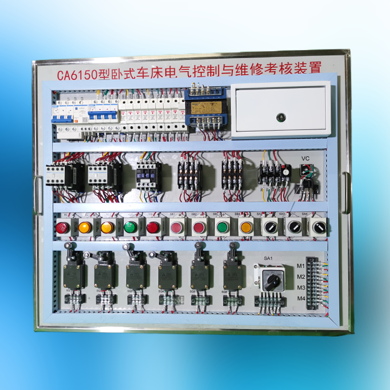 產品詳細介紹CA6150車床控制電路考證板, 模板由15-20mm實芯木板精加工而成,整體噴塑,顏色與實驗臺架協調。面板上裝有斷路器、熔斷器、接觸器、熱繼電器、變壓器等元器件,這些元器件直接安裝在面板表面,可以很直觀的觀看它們的動作情況。走線采用箱內布線,整潔美觀,測試點用內置端子引出,安全美觀。箱上內置故障箱,設有故障開關,有正面開門的暗鎖。箱上提供時控系統,箱上所提供的器件為國內知名品牌,且滿足CA6150車床電路的實驗考核需要。 |