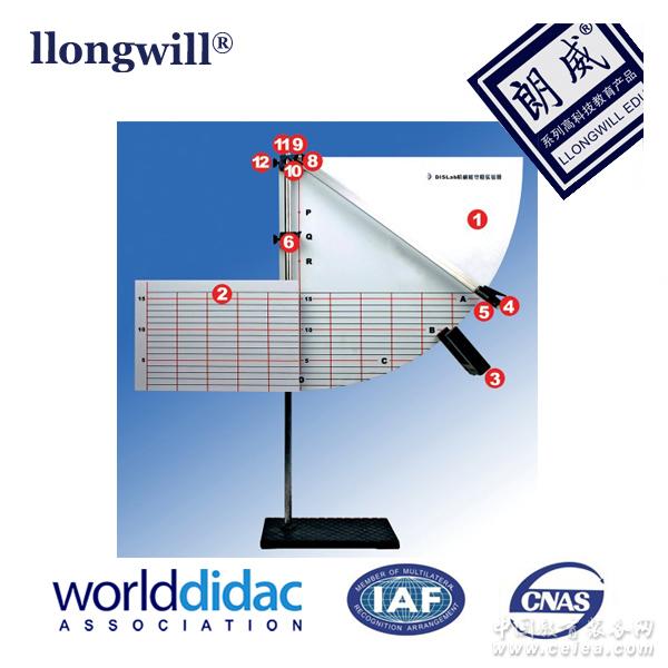 特點:機械能守恒實驗器(圖187)由主板①(參見圖中標號,下同)、副板②、光電門傳感器固定臂(主板后③)、磁鐵夾固定臂(含磁鐵夾,主板前④)、擺錘⑤(含擺錘線)、定位擋⑥、測平器(后附)、中央螺母⑧、中央螺栓⑨、擺錘線固定栓⑩、蝶型螺栓、通用螺栓構成,與朗威®DISLab光電門傳感器配套使用,實驗時將該裝置固定在常規鐵架臺上。