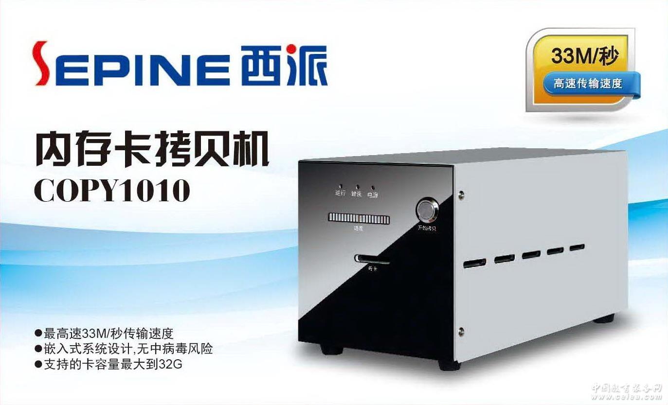 產品詳細介紹COPY1010 1拖10 SD卡極速拷貝機 COPY1010全速SD卡拷貝機,插入一張母卡,可以同時拷貝10張子卡,一拖十,每根數據線采用33Mbit/s,四線方式極速拷貝,卡支持多快速度就有多快速度拷貝; .智能檢測,插幾張卡拷幾張卡; .拷貝進程動態顯示,直觀明了; .金屬輕觸按鍵,一鍵拷貝,方便快捷; .支持的卡容量:最大到32G .支持卡的協議:HD SD高速卡 .全內容拷貝,可以支持加密卡的拷貝,不管是Linux還是windows文件格式,照搬不誤; .適用工廠批量負責有內容的SD卡,GPS地圖,驅動程序等實用場合;