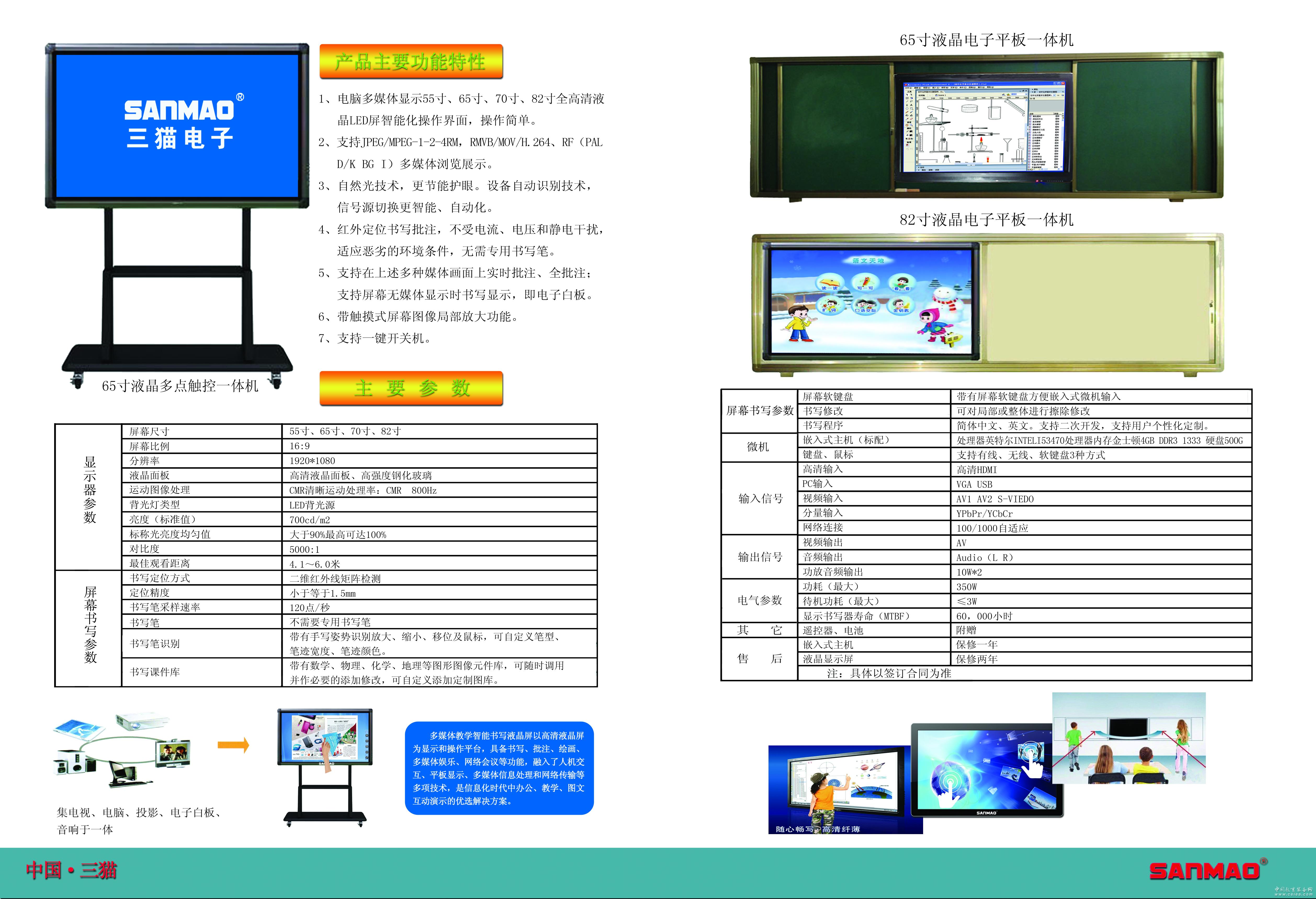 產品詳細介紹 三貓電子成立于1999年,是一家集研發、制造、市場營銷為一體的電子科技企業,經歷十多年的發展歷程,經營規模不斷擴大,產品涉及安防設備、LED顯示器、監視器、大尺寸LCD/LED液晶拼接屏、液晶廣告機、液晶智能電子平板、多媒體軟件、教育教學軟件等多個領域。三貓電子經過十多年的開拓創新,具備了高效率的生產實力及先進的品質控制水平,是中國液晶顯示設備主導供應商之一,中國電子學會高級會員單位,德國耐普頓中國唯一一家合作企業,我們在中國深圳和山東日照有現代化的研發基地,歡迎五湖四海的朋友蒞臨指導。