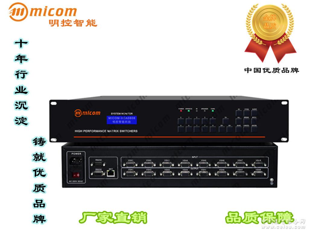 產品詳細介紹VGA矩陣8進8出的概述: 明控(MICOM)品牌VGA矩陣8進8出,采用原裝進口高性能專業處理芯片,VGA矩陣切換器專門用于對電腦顯示信號進行切換和分配,可將多路信號從輸入通道切換到輸出通道中的任一通道上,并且輸出通道間彼此獨立。VGA矩陣切換器應用領域很廣泛,只要有音視頻信號交叉切換的地方,就要用到各類的矩陣。 VGA矩陣8進8出的性能: 1. 型號:MICOM-VGA0808。 2. 8路VGA電腦信號輸入,8路VGA電腦信號輸出,可完全交叉切換。 3. 采用最新32位ARM11內嵌式處理器,500M高帶寬芯片,具有長線驅動功能。 4. 采用數字同步識別處理(DSIP)技術,信號具有長距離傳輸失真增益補償技術,實現自動增益。 5. 采用可編程邏輯陣列電路(FPGA),超強大的邏輯編譯系統功能,使矩陣更靈活,更快,更穩定。 6. 采用1500KV的ESD靜電保護電路,防止熱插拔對設備造成損害。 7. 產品帶有掉電現場切換記憶保護。 8. 產品帶有按鍵鎖功能,通過遙控器可以鎖住矩陣按鍵,避免其他人誤操作。 9. 用高亮大屏幕藍底液晶顯示屏,可顯示設備各通道的切換狀態。 VGA矩陣8進8出的特點: 1. 內置輪循切換功能,能任意設定間隔時間和通道。 2. 內置32組場景存儲功能,當使用的時候即可直接調用。 3. 兼容市場所有同類產品的代碼和指令,滿足不同行業和客戶的需求。 4. 矩陣面板采用歐姆龍按鍵,經久耐用,靈敏度高,觸感舒適。 5. 具有1路網絡接口,2路RS-232和RS-485通信接口。 6. 雙串口設計,使與大屏拼接連接更方便快捷。 7. 開放式的控制協議和協議標準,支持第三方和客戶自研發軟件控制。 VGA矩陣8進8出的控制方式: 1. 按鍵控制:設備前面板上的按鍵可以操控矩陣的所有動作。 2. 遙控控制:使用遙控器操控矩陣的所有動作。 3. 矩陣軟件控制:在電腦上安裝明控的矩陣專用管理軟件,就可以完全操控矩陣的所有動作。 4. 拼接軟件控制,觸摸屏控制,中控控制,網絡控制。(可以選配) VGA視頻矩陣8進8出的規格: 1. 電 源AC:105V - 238V , 50 / 60 Hz ,國際電源標準。 2. 最大功率:15W。 3. 設備尺寸:482mm(長)x 278mm(寬) x 89mm(高)。 4. 機架安裝尺寸:19英寸標準 2U高度。 5. 設備凈重:4.8kg。 6. 設備包裝標準配置:矩陣主機,說明書,控制軟件,電源線,控制線,遙控器,保修卡。 VGA矩陣8進8出的參數: 1. 切換速度:55ms(最長時間)。 2. 信號強度:0.7V p-p/5.08Vp-p(TTL)。 3. 信號類型:VGA,RGBHV,RGBS, RGsB, RsGsBs高清晰度電視(HDTV)。 4. 信噪比:≥99dB。 5. 隔離度(串擾):-91dB @10 MHz, -79dB @100 MHz。 6. 輸入輸出接口:HD15PIN(VGA)母頭/15針DB插座/D-Sub。 7. 輸入、輸出助抗:75Ω。 8. 支持分辨率:高清640X480~2560X1600(60Hz)。 9. 同步輸入、輸出電平:TTL 電平。 10. 控制協議:9600 波特, 8 位, 1 個停止位,無奇偶校驗。 11. 串行控制接口:2 = TX, 3 = RX, 5 = GND。 12. 控制程序:《MICOMSM》 用于Windows環境的控制程序。 高端專業VGA矩陣切換器官方網站 www.mcvga.com |