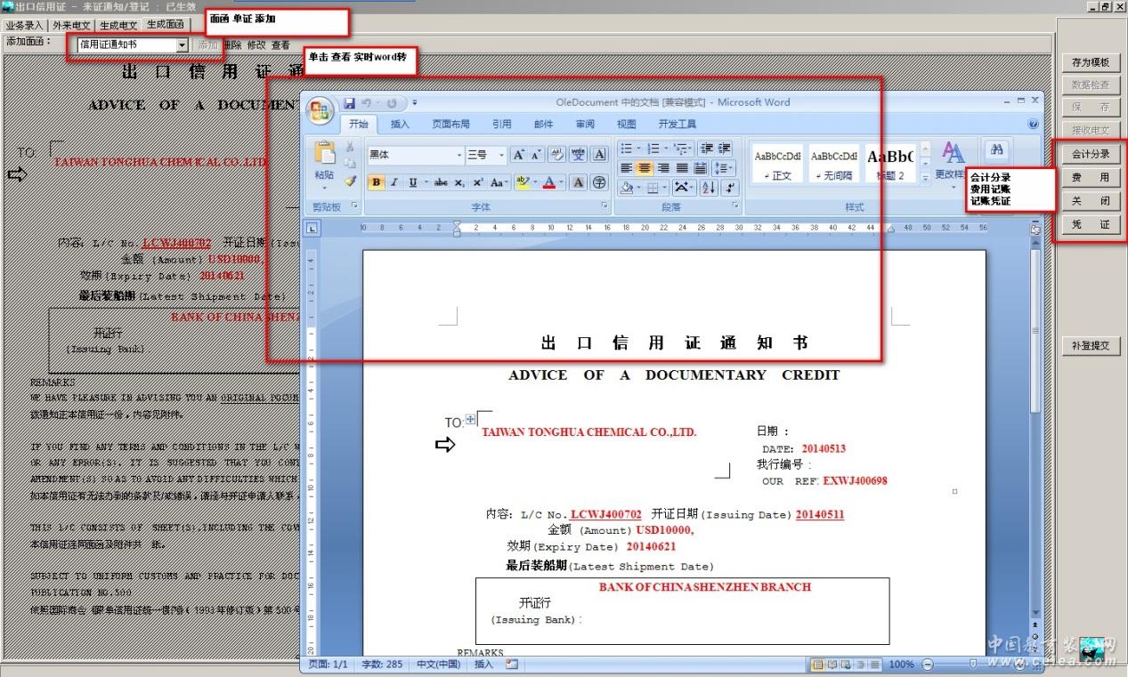 商業(yè)銀行國(guó)際業(yè)務(wù)教學(xué)系統(tǒng) C/S V2.0,基于WINDOWS平臺(tái),采用C/S結(jié)構(gòu),系統(tǒng)與現(xiàn)役商業(yè)銀行業(yè)務(wù)操作一致。以真實(shí)的角色體驗(yàn)商業(yè)銀行國(guó)際業(yè)務(wù) ,根據(jù)業(yè)務(wù)操作的需要,分別授予不同的操作權(quán)限,形成一套集中、安全、快速的控制體系,業(yè)務(wù)系統(tǒng)可以根據(jù)實(shí)際業(yè)務(wù)自動(dòng)產(chǎn)生對(duì)應(yīng)的SWIFT電文;提供配套的政策法規(guī)教學(xué)幫助(系統(tǒng)自帶),系統(tǒng)可實(shí)現(xiàn)日初日終賬務(wù)日切功能。
