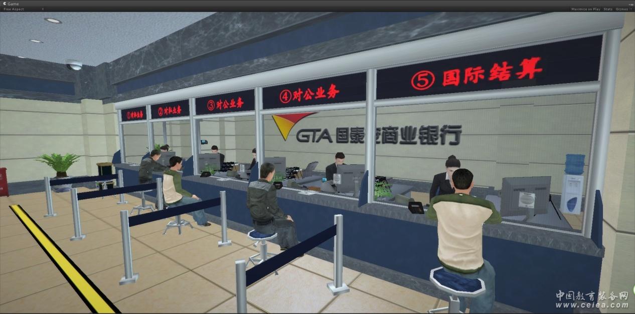 純3D仿真的場景、人物和設備,全面真實的反應銀行大廳實景效果
