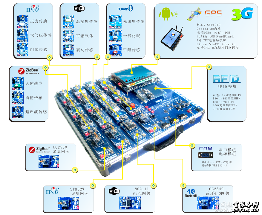 產(chǎn)品詳細介紹Cortex-A8內(nèi)核高端的多功能物聯(lián)網(wǎng)教學產(chǎn)品,能夠?qū)W習主流無線傳感協(xié)議(IPV6、Zigbee、WIFI、Bluetooth)無線射頻識別(低、高、超高頻RFID)以及物聯(lián)網(wǎng)周邊3G、GPRS、GPS教學解決方案。 |
