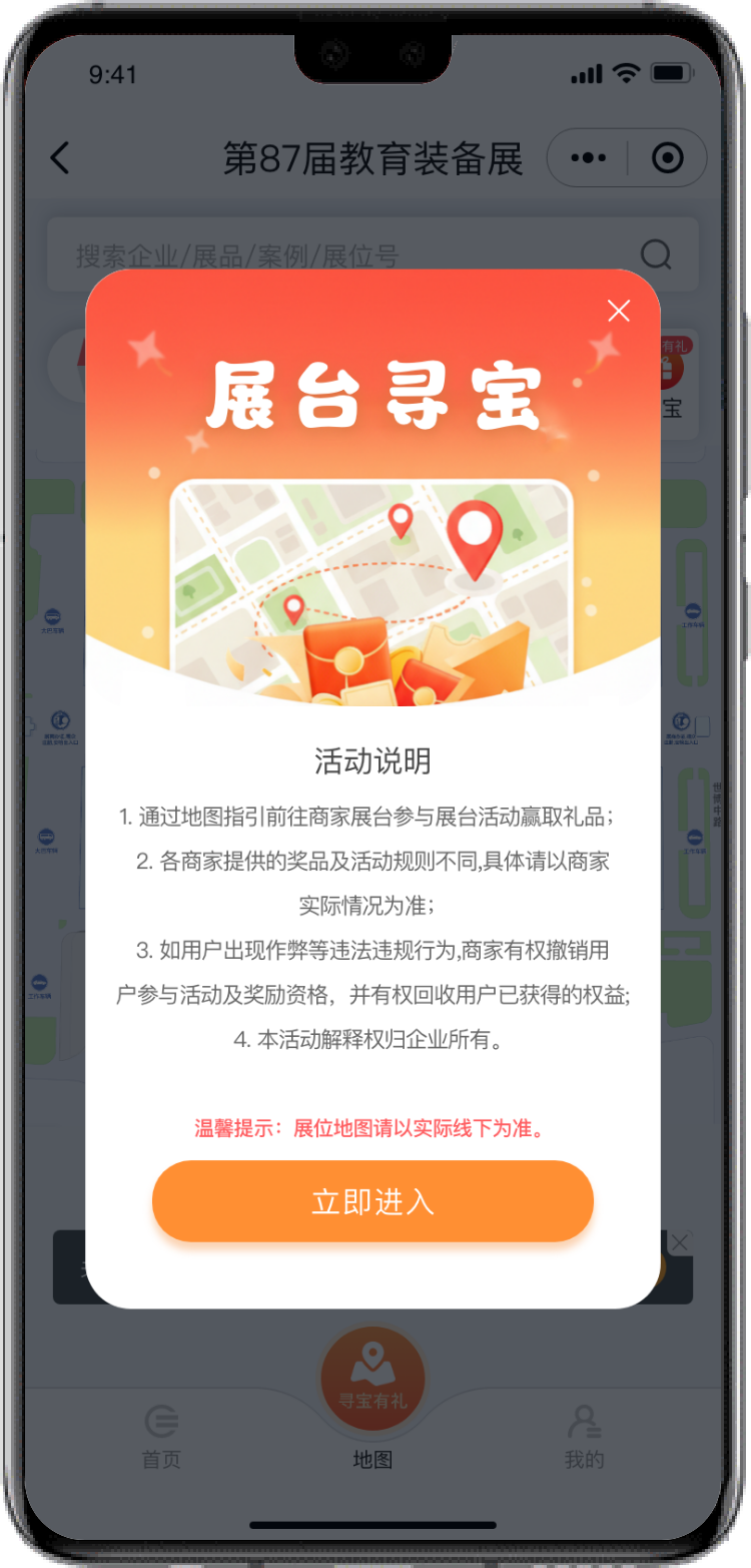 為提升第87屆中國教育裝備展示會觀展現場互動性和趣味性,同時合理有效的引導展館人流飽和度,特在本屆展會期間開設現場“展臺尋寶”活動。活動流程如下: