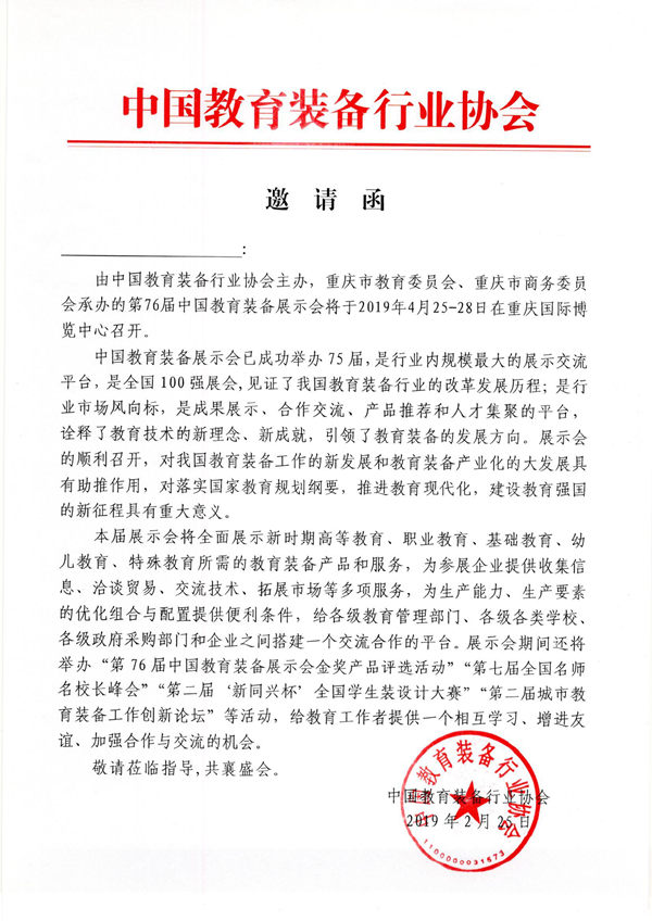 第76屆中國教育裝備展示會觀眾邀請函
