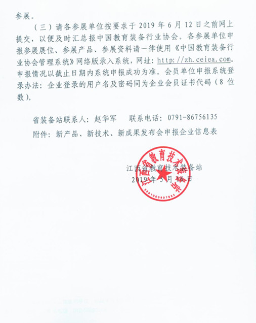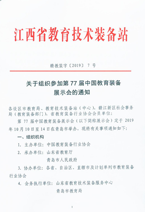 | 江西省教育技術裝備站關于組織參加第77屆中國教育裝備展示會的通知 |