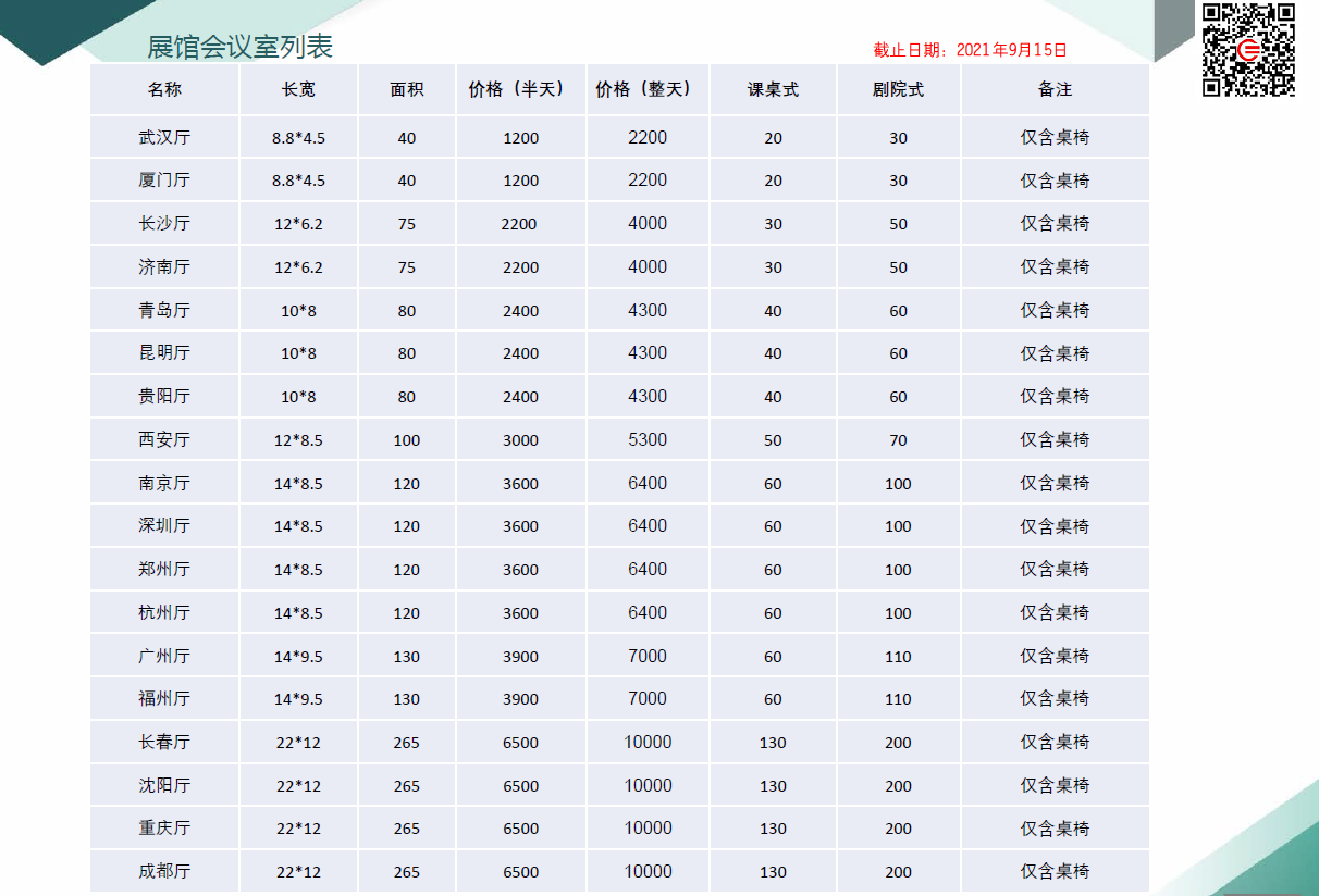 注:此價(jià)格僅包括租賃會(huì)議室場地費(fèi),其他的各類設(shè)備費(fèi)用需現(xiàn)場另行支付