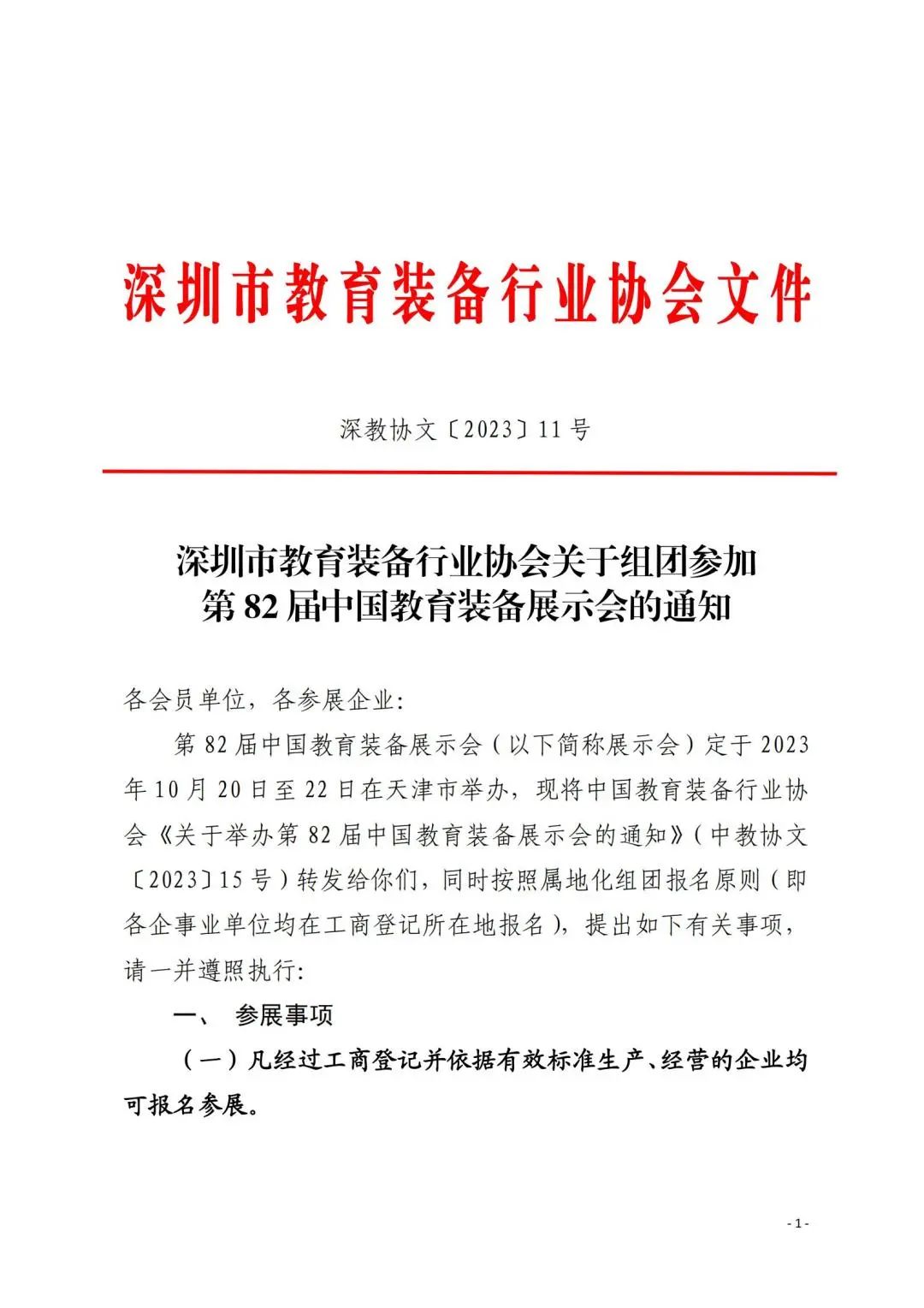 深圳市教育裝備行業協會關于組團參加第82屆中國教育裝備展示會的通知