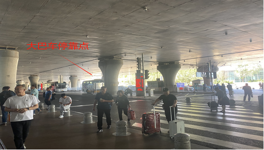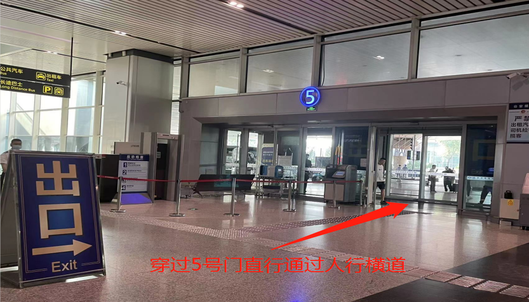 2、乘車路線指引:出站后請從T2國內到達出口前往5號門,出5號門直行過人行橫道到達第二條車道循環接駁車上車點。