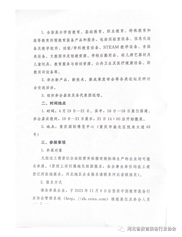 河北省教育裝備行業協會關于河北企業組團參加第83屆中國教育裝備展示會的通知