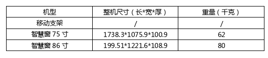 智慧窗大屏設備單臺往返運費及設備規格(加壁掛厚度增加30mm)如下: