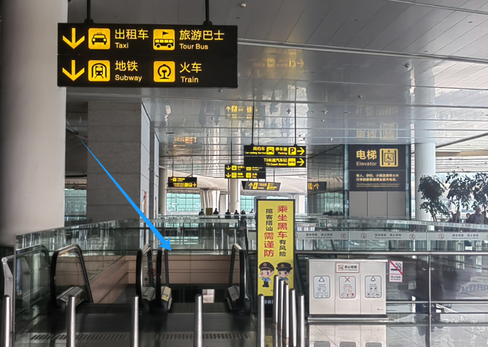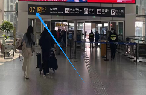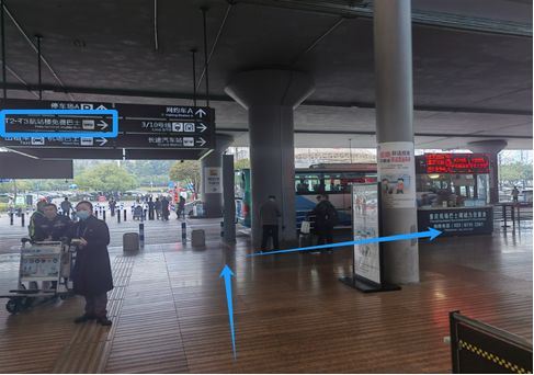 2、乘車路線指引:出站后請前往7號門,出7號門后通過候機樓天橋乘坐扶梯抵達一樓9號門外機場大巴發(fā)車處;