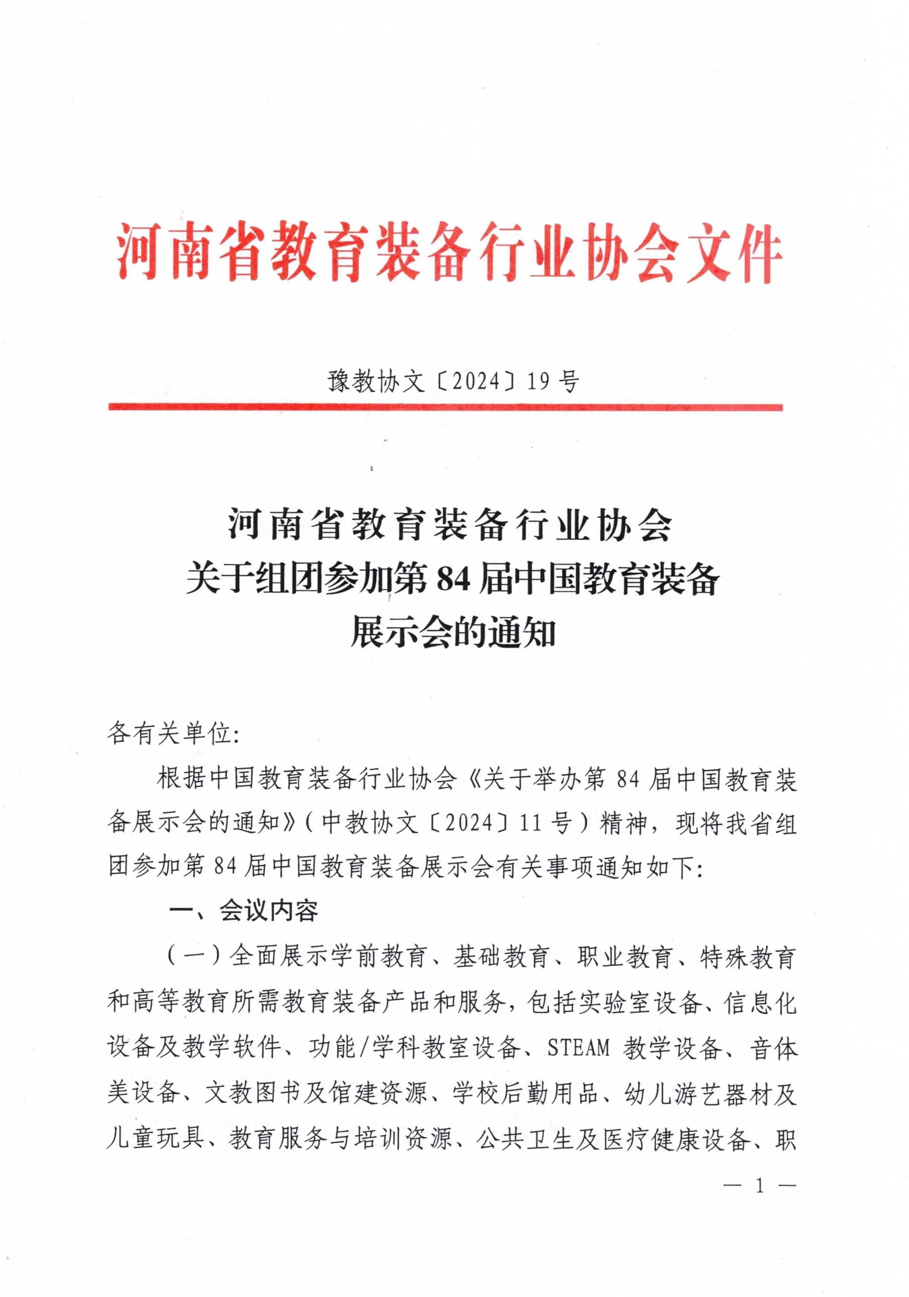 河南省教育裝備行業協會關于組團參加第84屆中國教育裝備展示會的通知