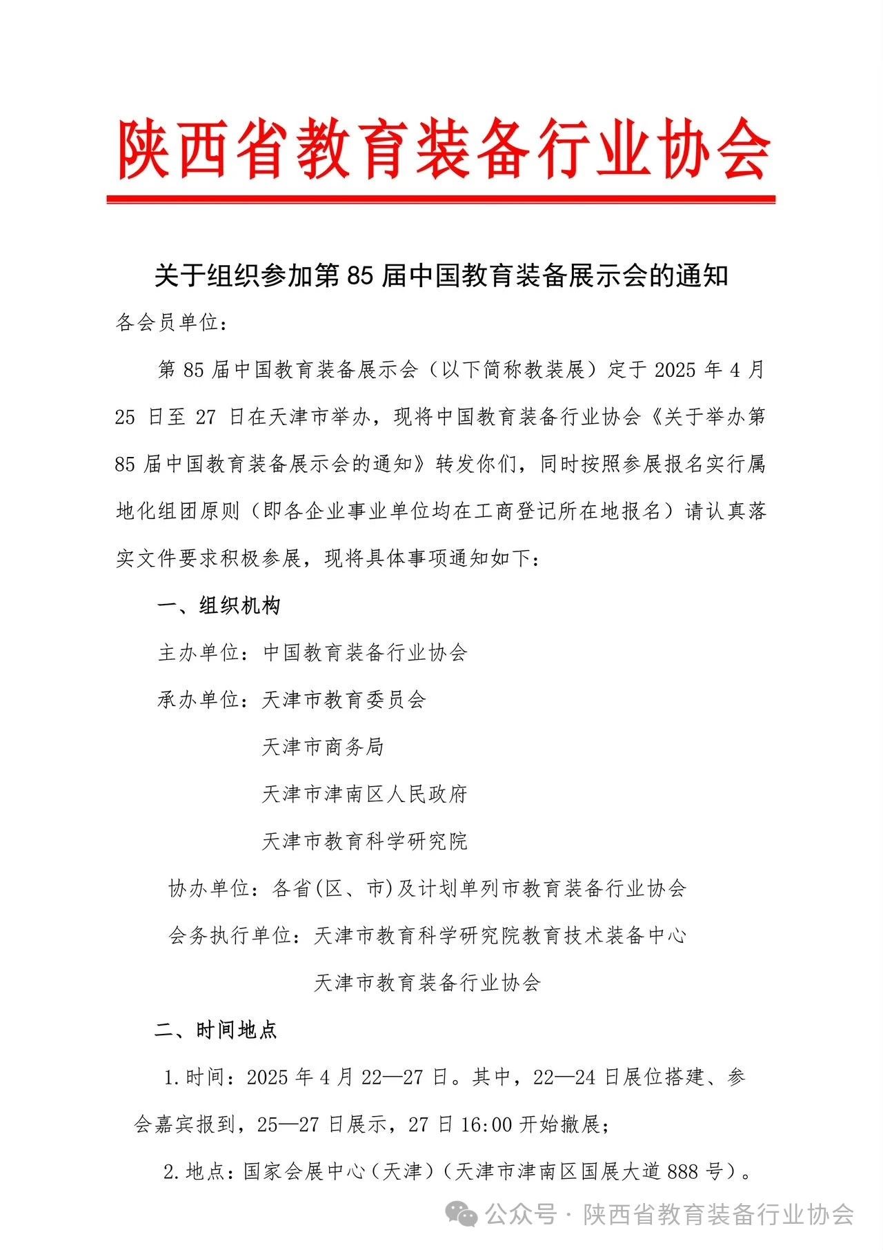 陜西省教育裝備行業協會關于組織參加第85屆中國教育裝備展示會的通知