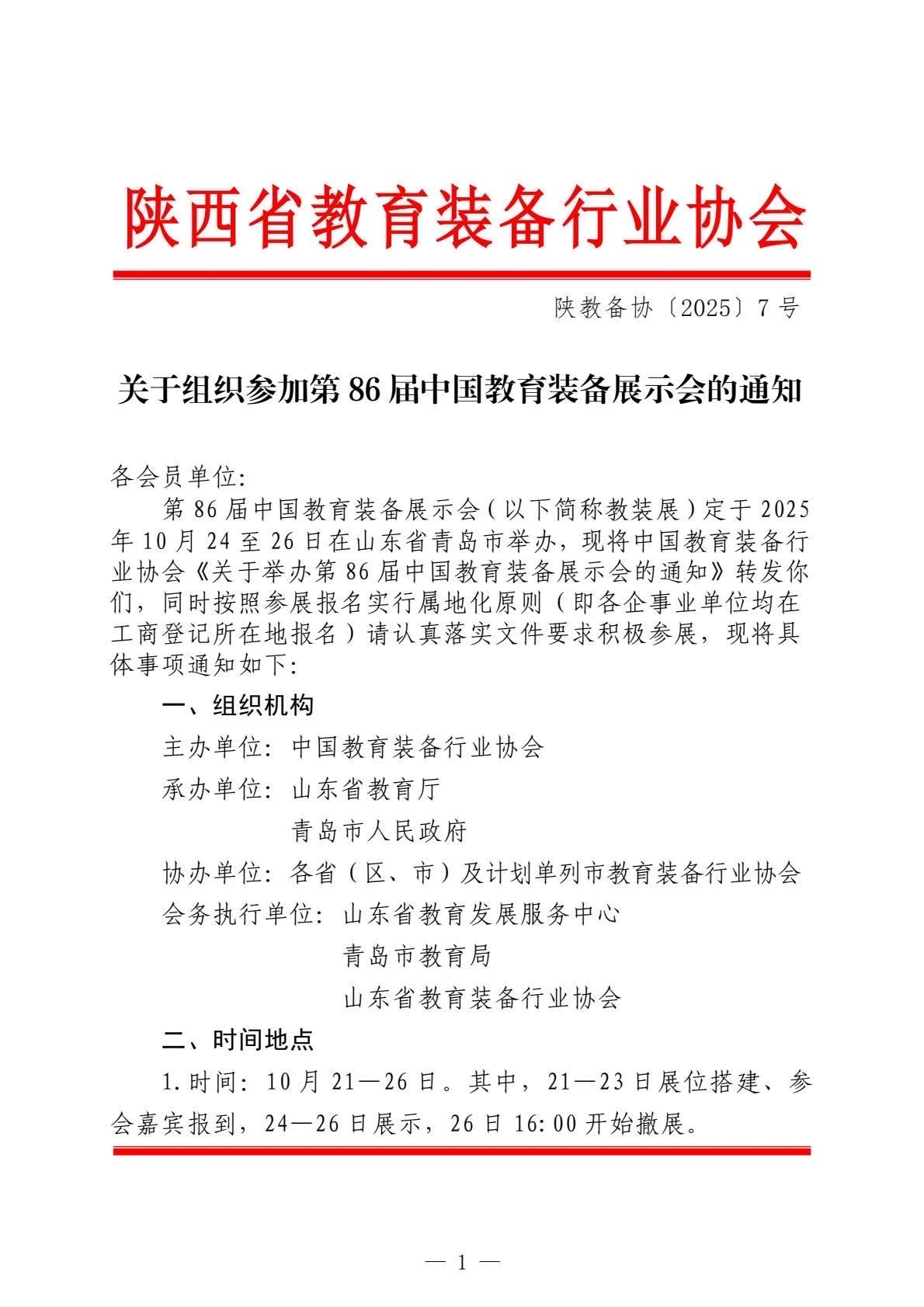陜西省教育裝備行業協會關于組織參加第86屆中國教育裝備展示會的通知